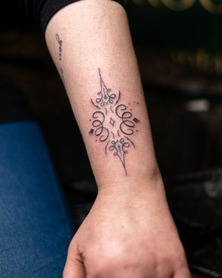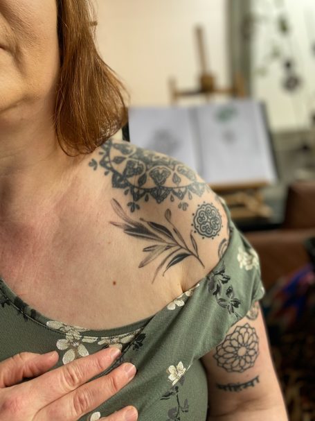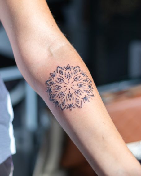 Dabei lernte ich verschiedene Stilrichtungen zu tätowieren, und spezialisierte mich auf die Umsetzung von Ornamental Tattoos, sowie Freihand Tattoos, des weiteren Dotwork und Geometrische Muster sowie Mandalas.